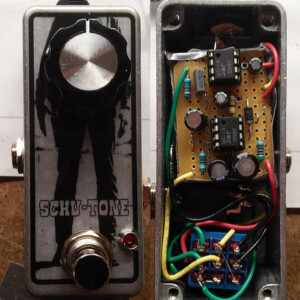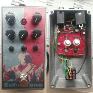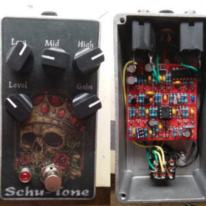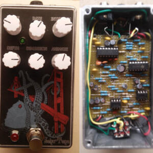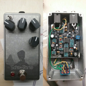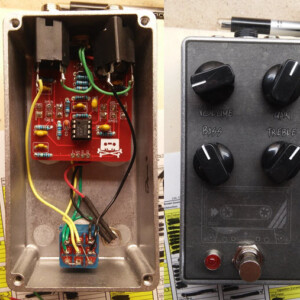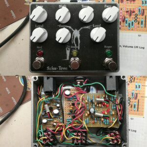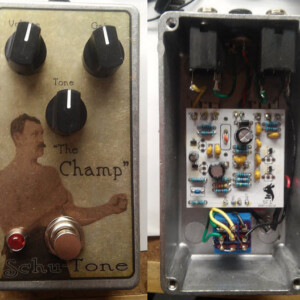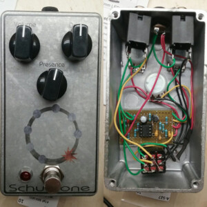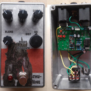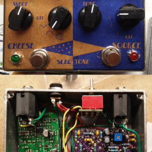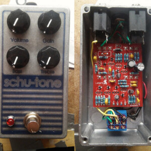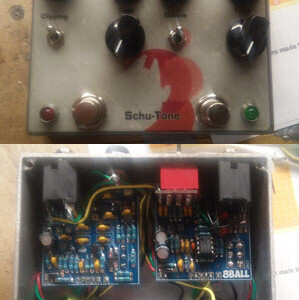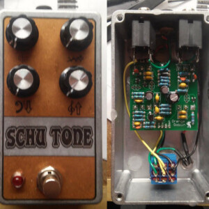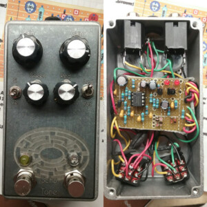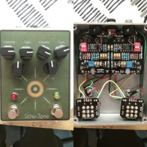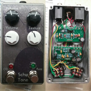 Dual OD/Fuzz. OD side based on JHS Twin Twelve, Fuzz side based on Tone Bender. Similar to JHS Calhoun. Both boards on vero.
