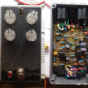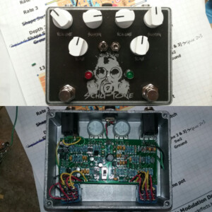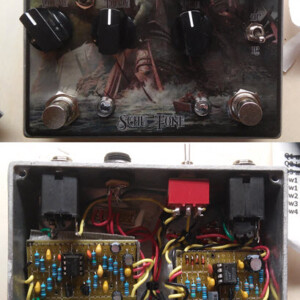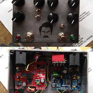 Custom dual OD with one side based on OCD, other side based on Rat. Middle footswitch enters circuit into feedback loop. Both sides built on vero.