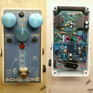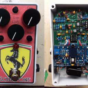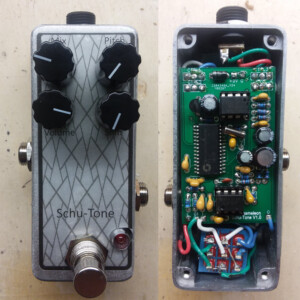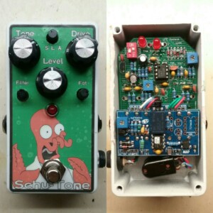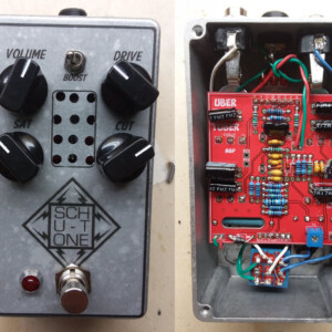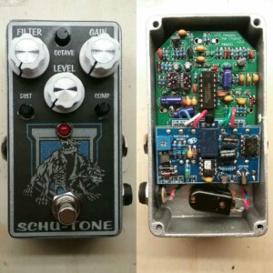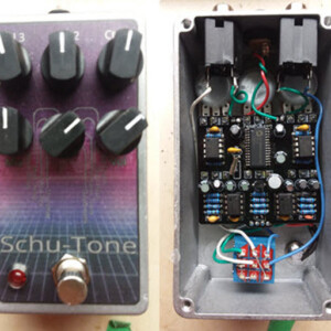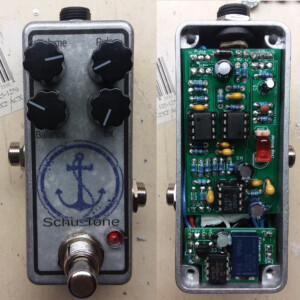 The Bender fuzz is Schu-Tone's take on the classic Germanium Tone Bender. This gives you the instantly-recognizable fuzz tones you know, but adds a Blend control to dial in the bass response and the Pre control helps keep the gain in check.