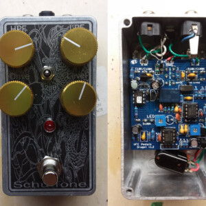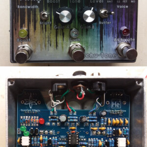 The Fracas is a take on the classic Silicon Fuzz Face circuit. BC108 transistors give you amazing high-gain sound that cleans up nicely with the volume knob. Bias control changes your tone from full to spluttery.